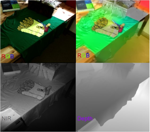 多模式成像使用同样的图像传感平台同时获取目标物体的多种图像信息,比如颜色(RGB) + 近红外灰度 + 深度,或多光谱 + 深度。